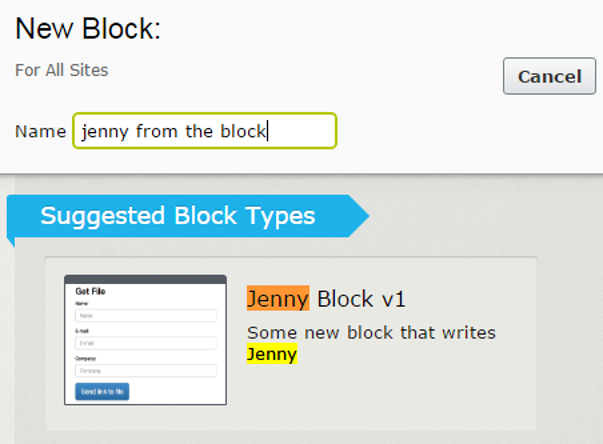 using EPiServer.Core; using EPiServer.DataAbstraction; using EPiServer.DataAnnotations; using System.ComponentModel.DataAnnotations; namespace Gosso.BlockTypes { [ContentType(DisplayName = "Jenny Block v1", GUID = "cdaa0690-55c8-478a-8c62-10d46f9ffc95", GroupName = "Common", Description = "Some new block that writes Jenny"), ImageUrl(path: "~/Static/Images/someimage.png")] public class JennyBlock : BlockData { [Required] [CultureSpecific] [Display(Name = "Heading", Description = "", Order = 100, GroupName = "Information")] public virtual string Heading { get; set; } } }